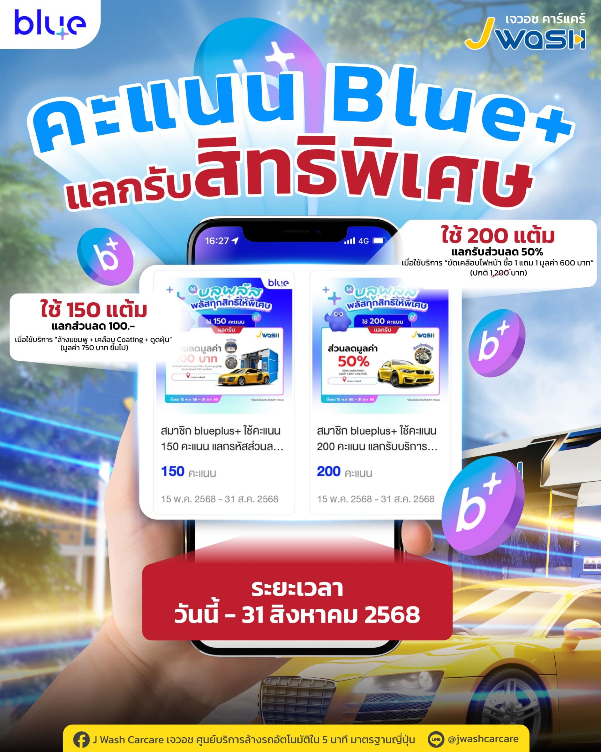 คะแนน Blue+ แลกรับสิทธิพิเศษที่ J Wash วันนี้ 31 ส.ค. 2568 เท่านั้น!