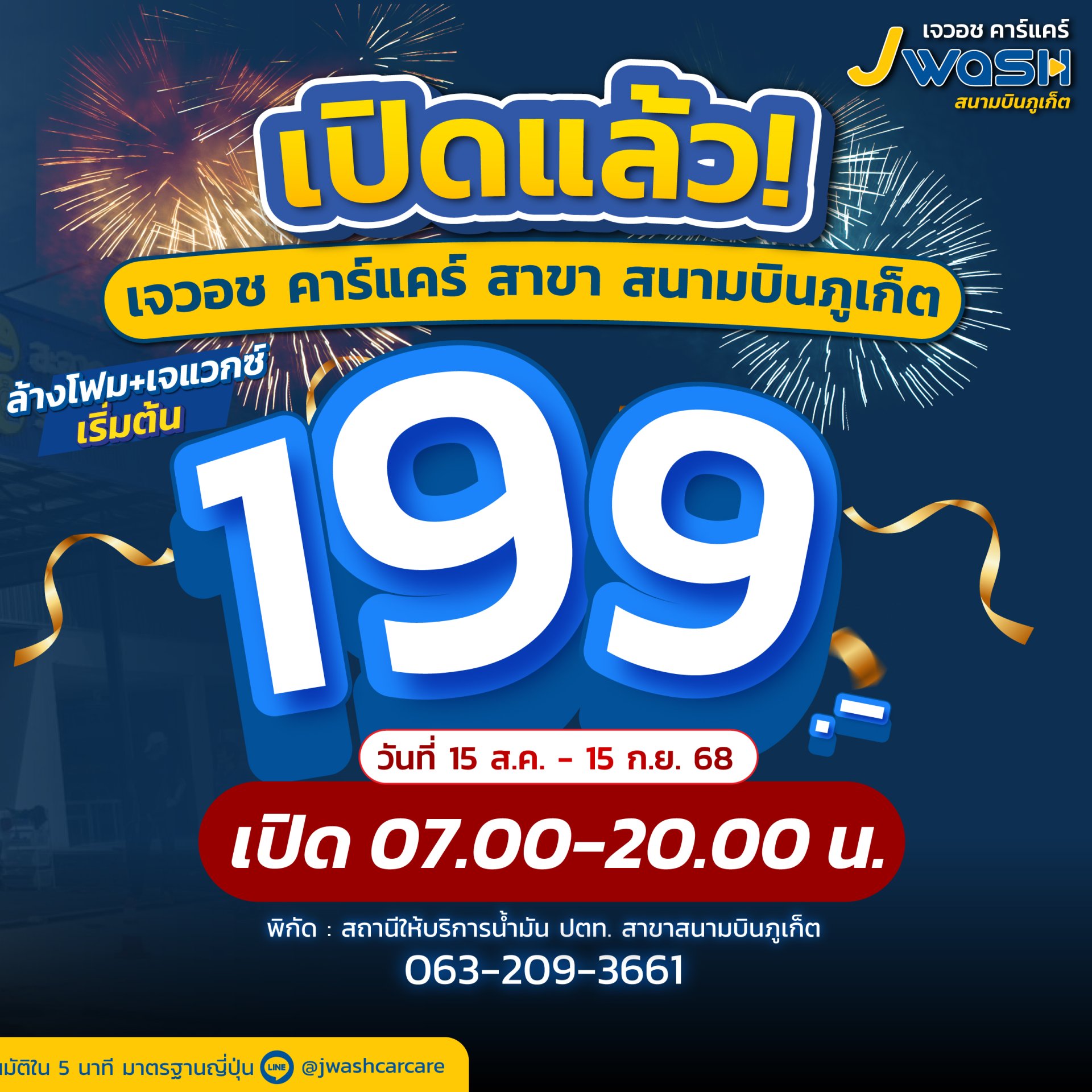 J Wash Carcare สาขาสนามบินภูเก็ต พร้อมให้บริการเต็มรูปแบบ